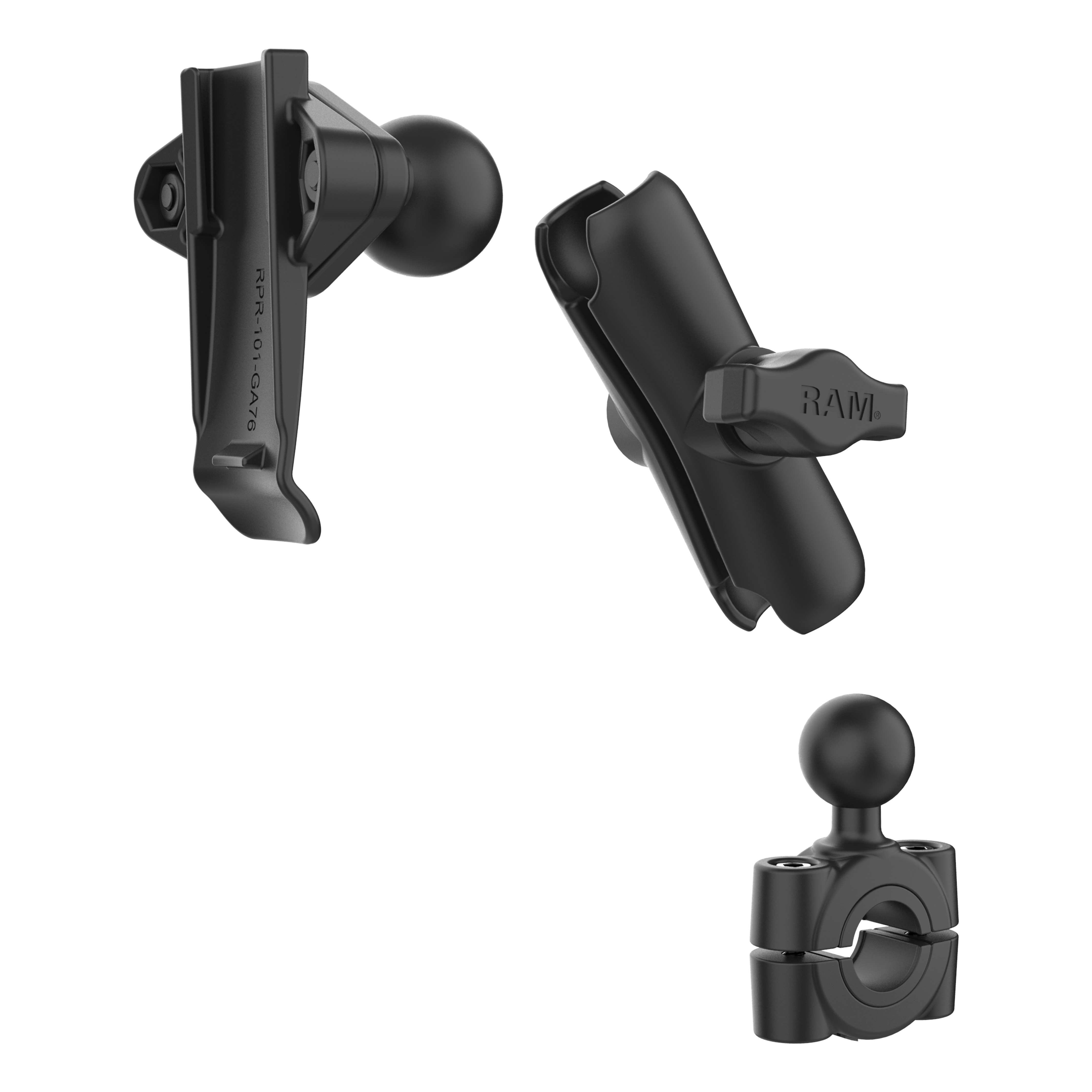 • Comprend une base Torque™ moyenne qui peut accueillir des rails de 1,91 cm (0.75") à 2,54 cm (1") de diamètre et un bras de prise double RAM® de Taille B de longueur moyenne