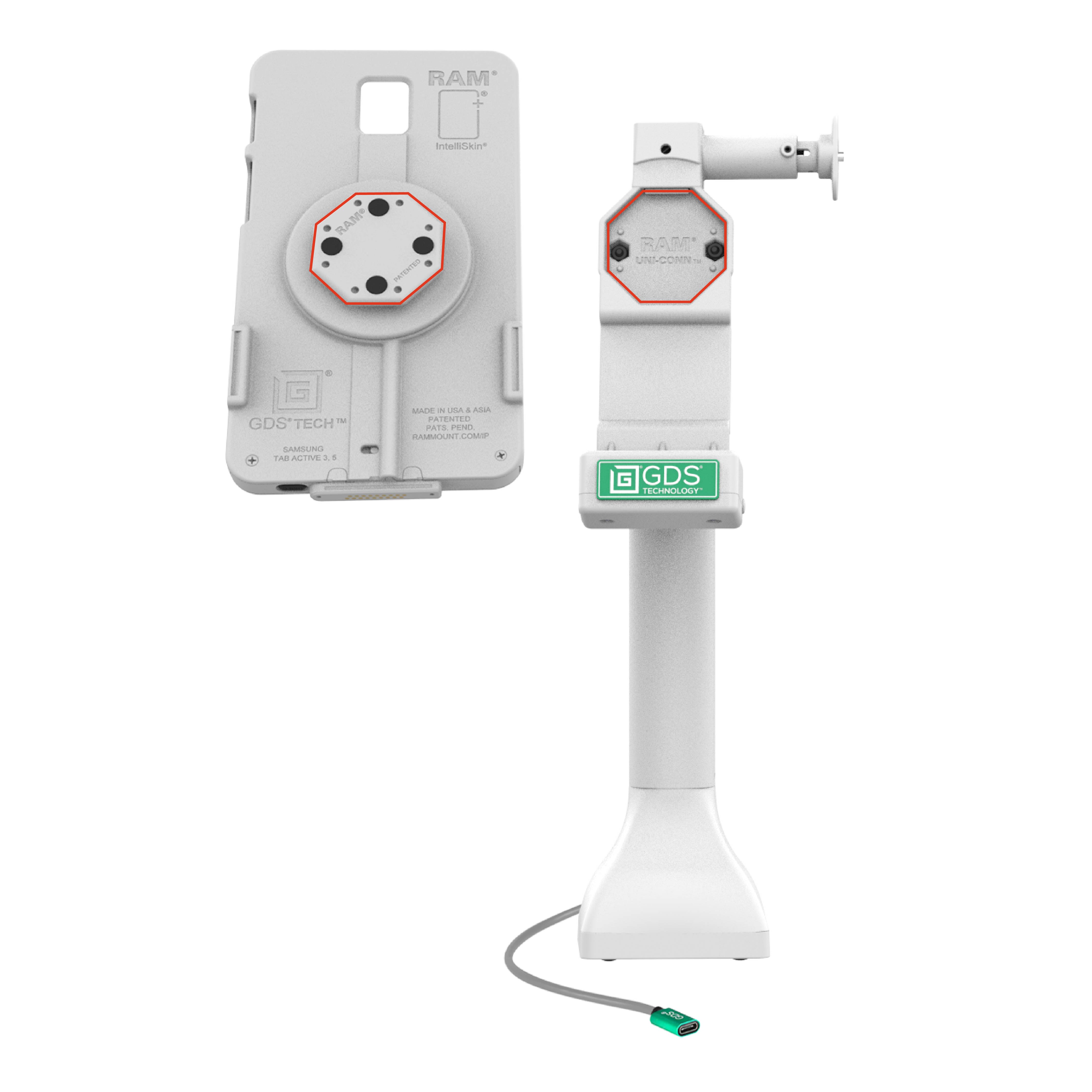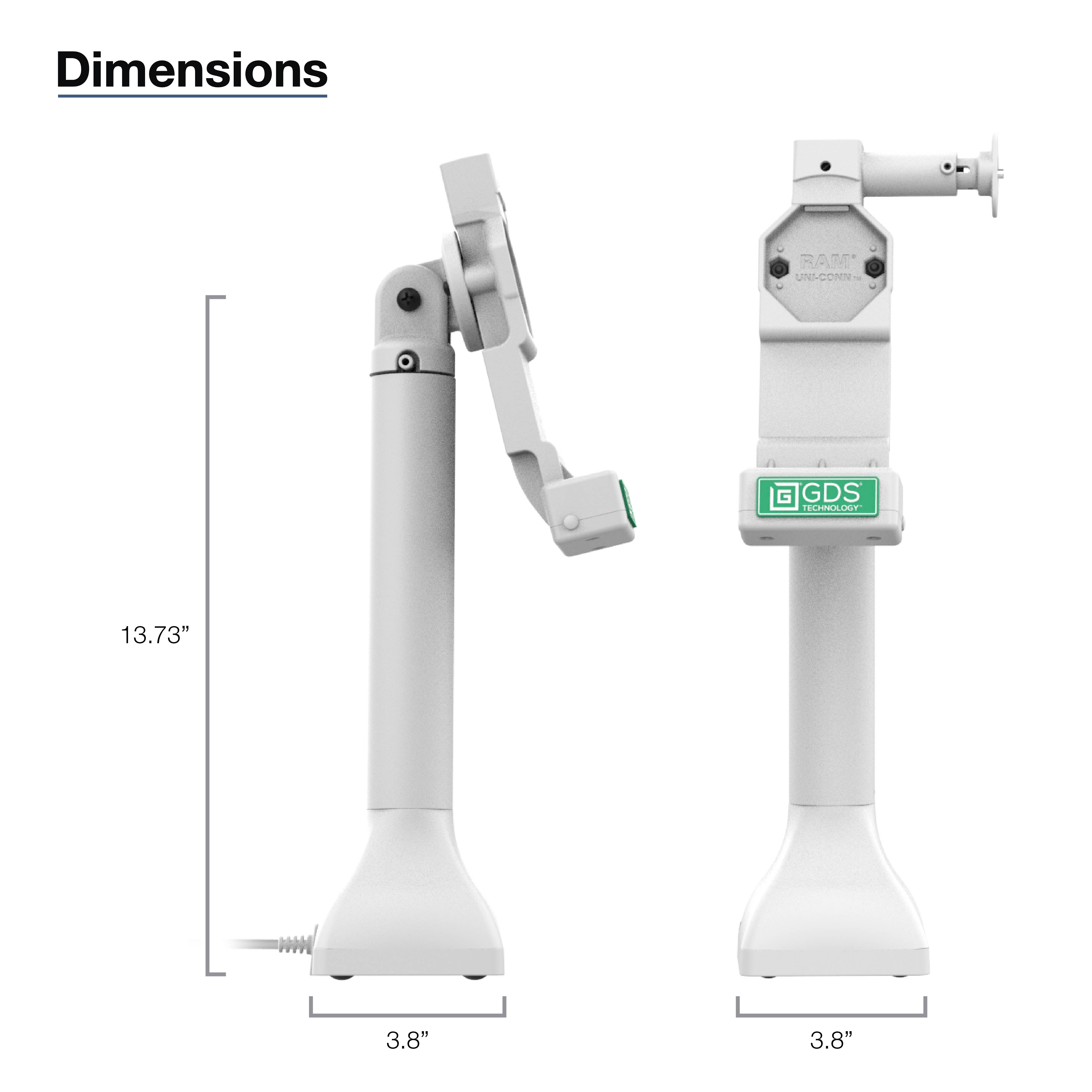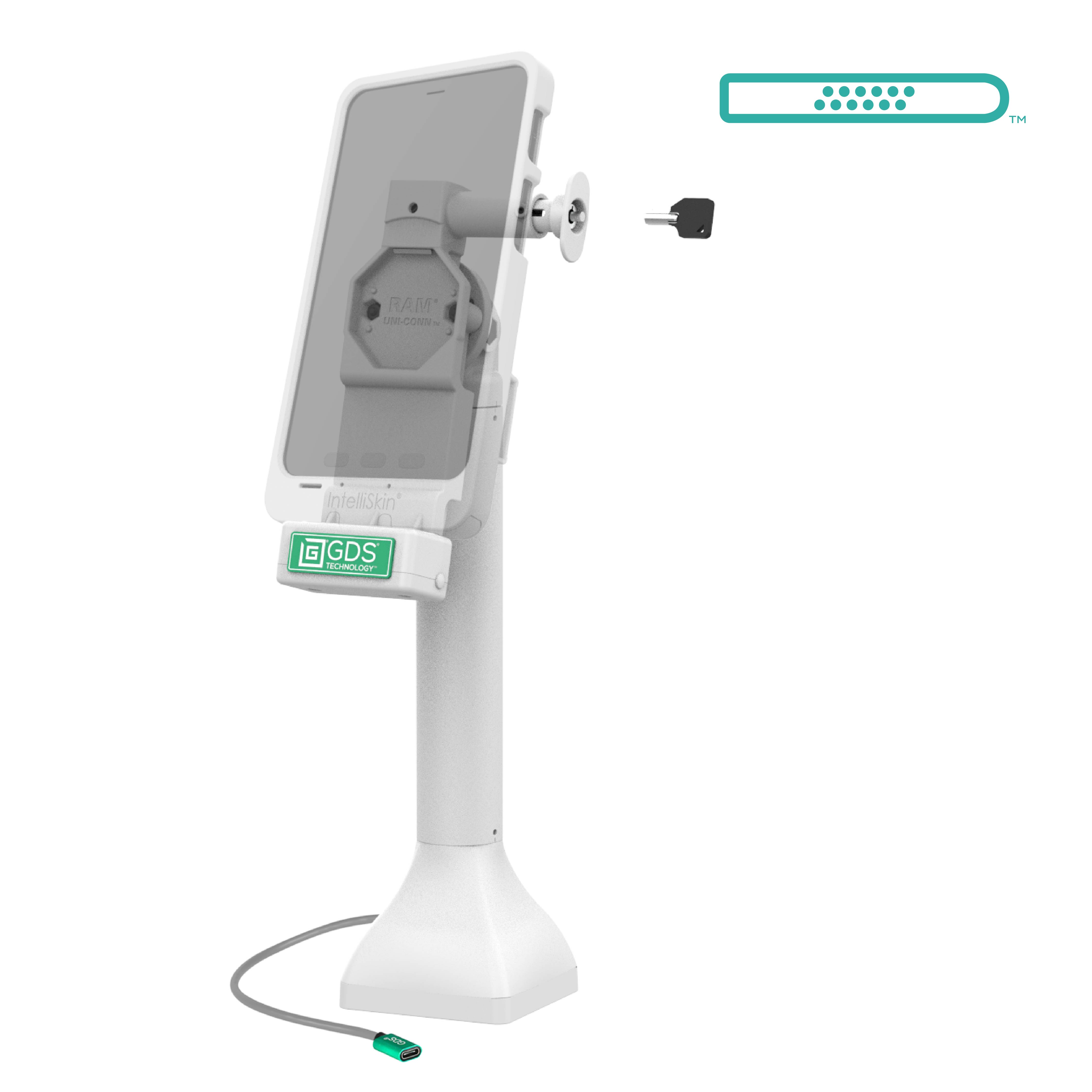 La station d'accueil à piédestal verrouillable GDS Uni-Conn de 35,56 cm (14") avec USB-C - Gris (RAM-GDS-DOCKL-D11-14-U4C-GRY) est une station d'accueil à piédestal autoportante de 35,56 cm (14") pour les appareils logés dans un IntelliSkin Next Gen, un IntelliSkin Hard Case, ou un IntelliSkin Thin-Case standard avec un adaptateur GDS Uni-Conn. Cette solution peut pivoter à 180 degrés et permet aux appareils de s'incliner à 180 degrés, ce qui est idéal pour les secteurs axés sur le client tels que la vente au détail, l'hôtellerie, la restauration, et plus encore. Gardez votre appareil en sécurité dans les environnements à fort trafic grâce au verrouillage par clé, intégré pour offrir une dissuasion antivol supplémentaire. L'alimentation est fournie aux broches pogo intégrées dans la station d'accueil GDS Uni-Conn via une connexion USB-C. Cette station d'accueil présente un style de fixation à perçage, offrant une base stable pour la station d'accueil haute. L'esthétique gris clair est idéale pour les environnements de travail sophistiqués et lumineux. Une seule station d'accueil pour les connecter tous. Toujours protégé. Toujours connecté.