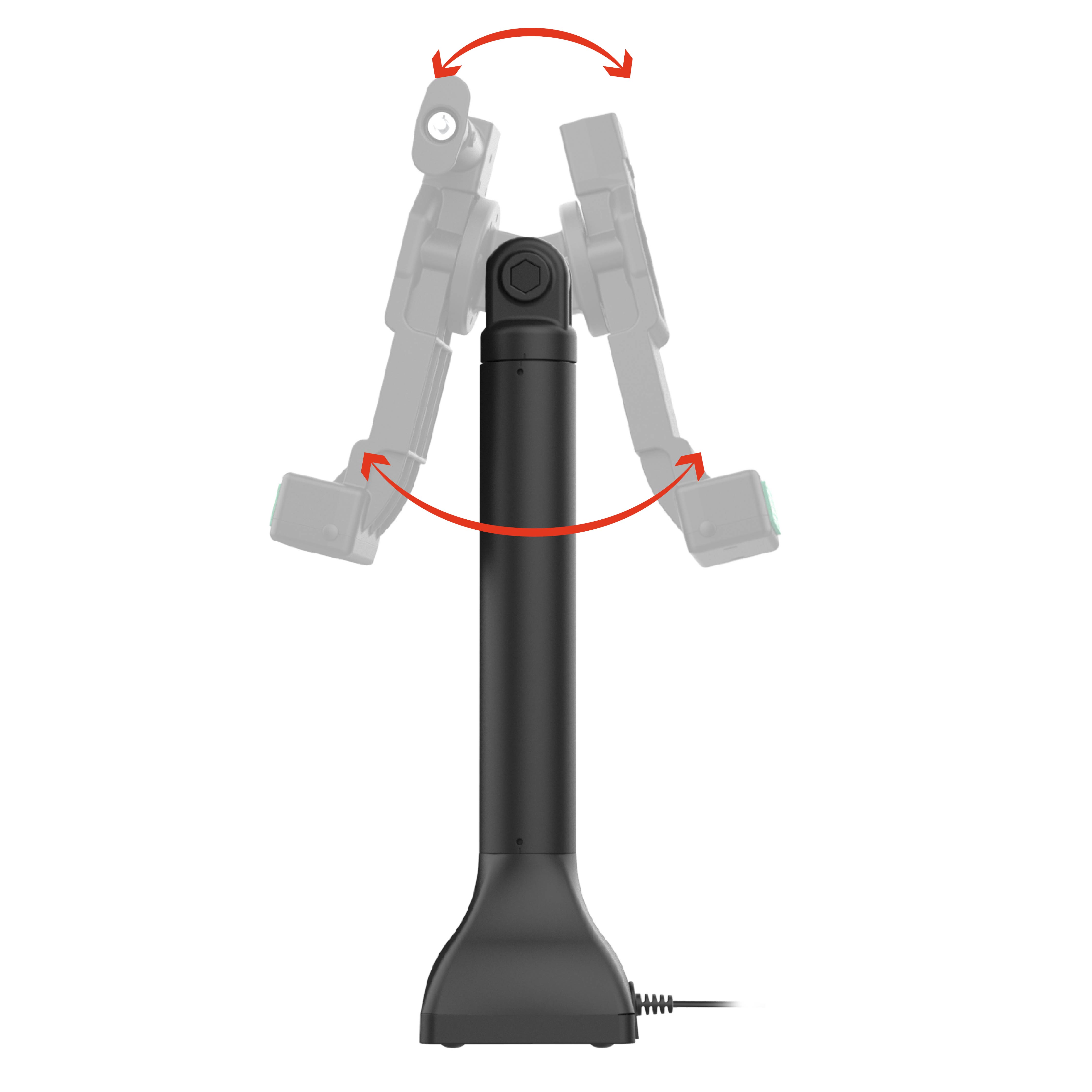 • Dock bascule de 180 degrés et permet aux appareils connectés de basculer de 180 degrés