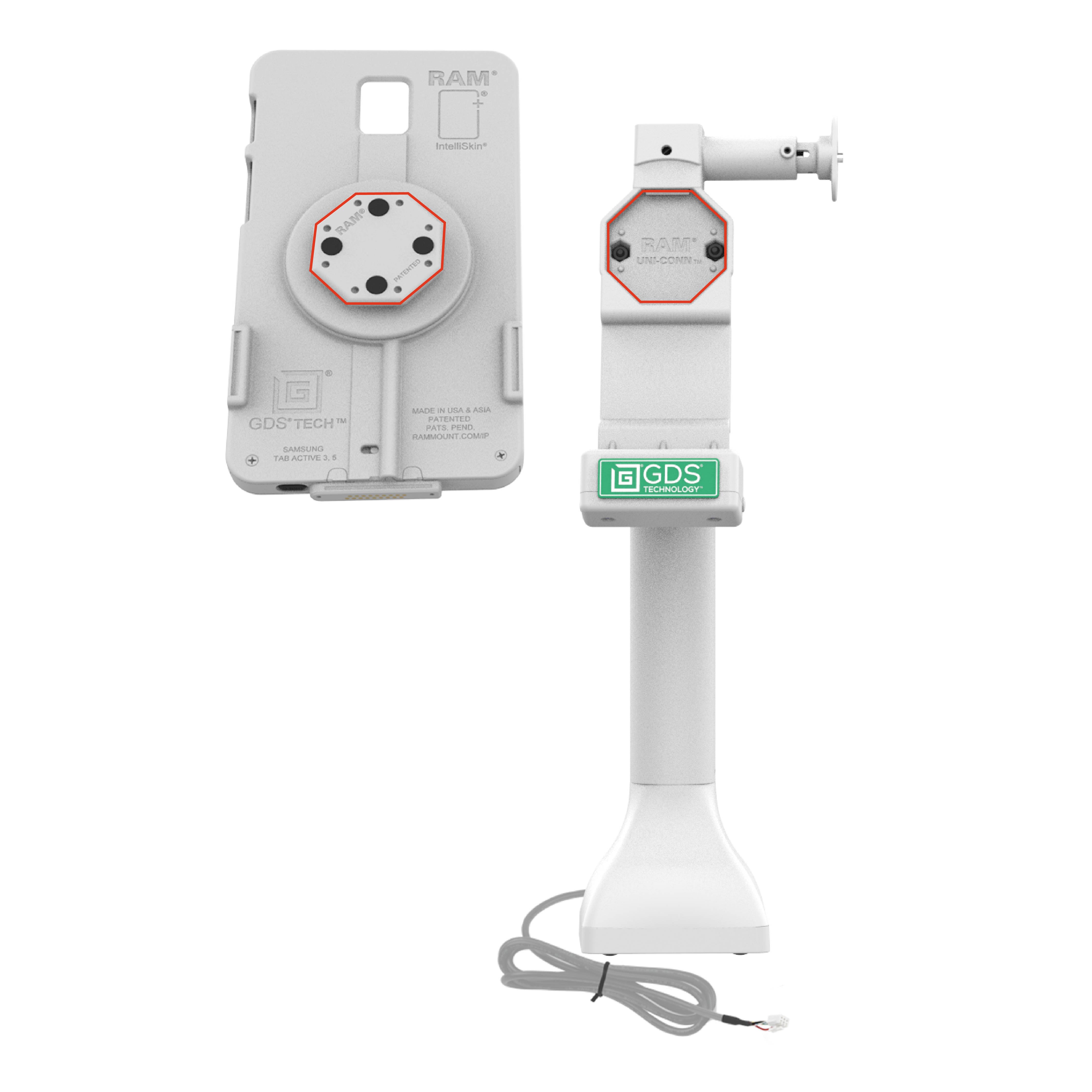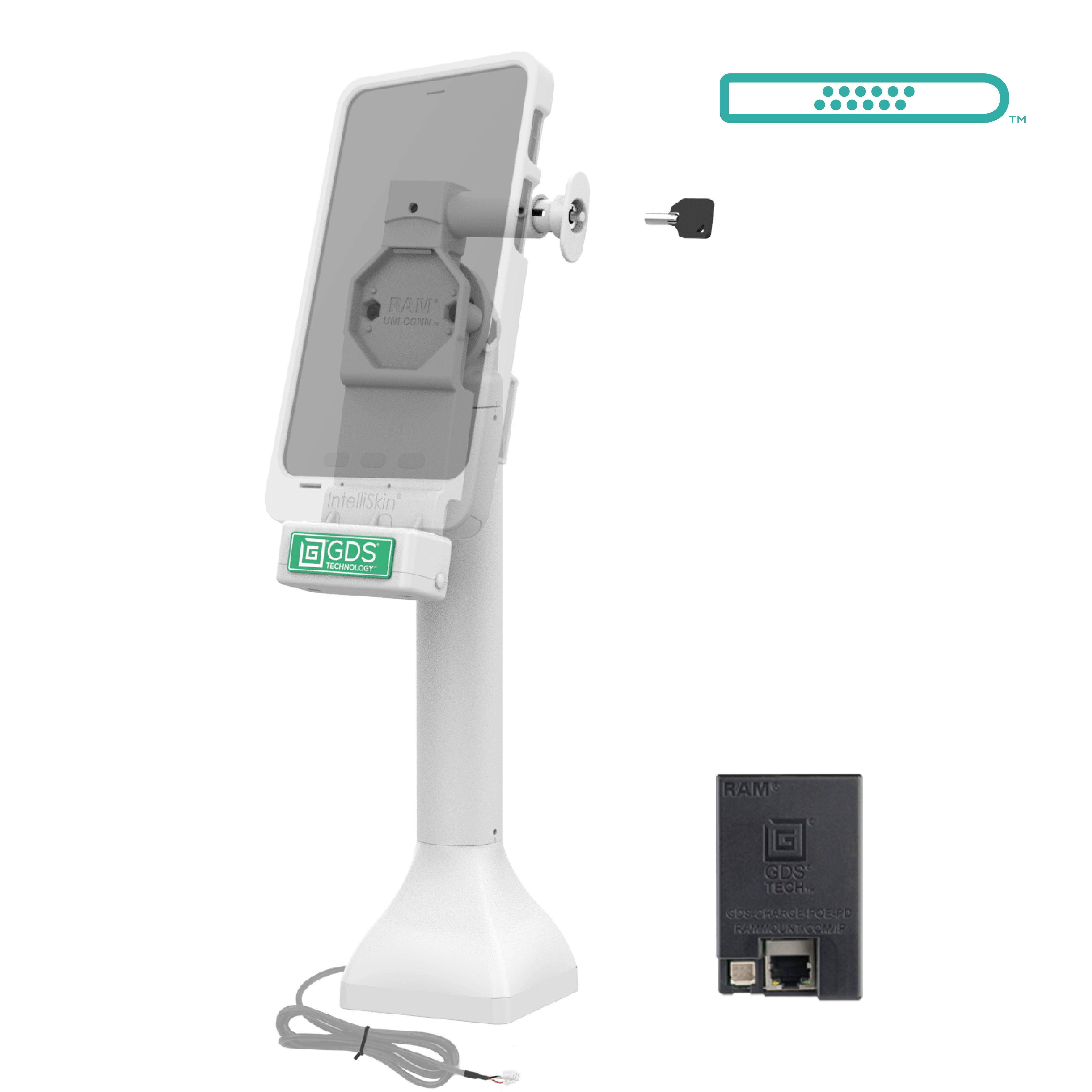 Le GDS Uni-Conn 35,56 cm (14") Locking Pedestal Dock avec PoE - Gris (RAM-GDS-DOCKL-D11-14-U4E-GRY) est une station d'accueil à piédestal autonome de 35,56 cm (14") pour les appareils enfermés dans un IntelliSkin Next Gen, un IntelliSkin Hard Case, ou un IntelliSkin Thin-Case standard avec un adaptateur GDS Uni-Conn. Cette solution peut pivoter à 180 degrés et permet aux appareils de s'incliner à 180 degrés, ce qui est idéal pour les secteurs centrés sur le client comme le commerce de détail, l'hôtellerie, la restauration, et plus encore. Protégez votre appareil dans les environnements à forte fréquentation grâce au verrou à clé, intégré pour offrir une dissuasion supplémentaire contre le vol. L'alimentation est fournie aux broches pogo intégrées à la station d'accueil GDS Uni-Conn via une connexion Power over Ethernet (PoE). Cette station d'accueil présente un style de fixation par perçage, offrant une base stable pour la station d'accueil haute. L'esthétique gris clair est idéale pour les environnements de travail sophistiqués et lumineux. Une station d'accueil pour les connecter tous. Toujours protégé. Toujours connecté.