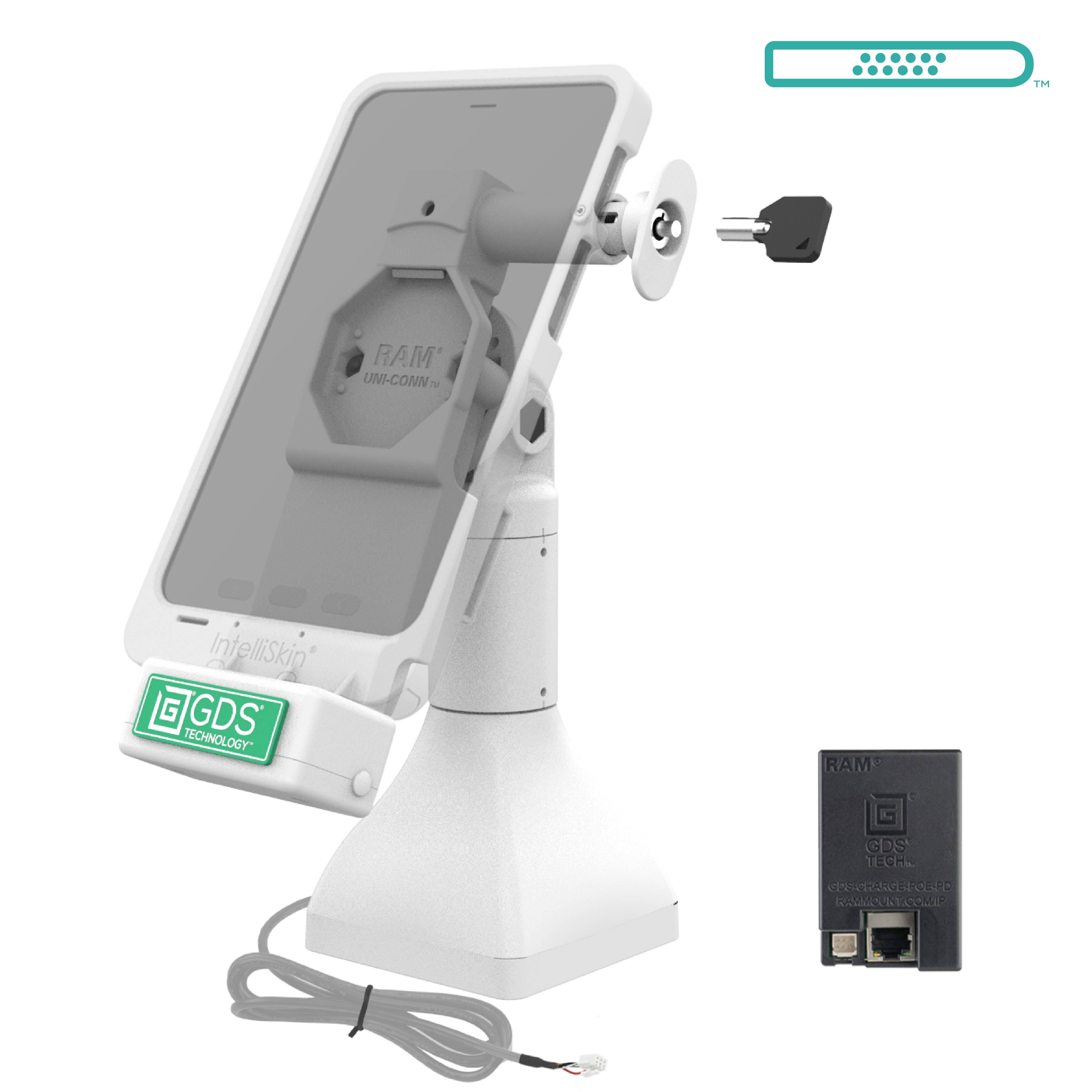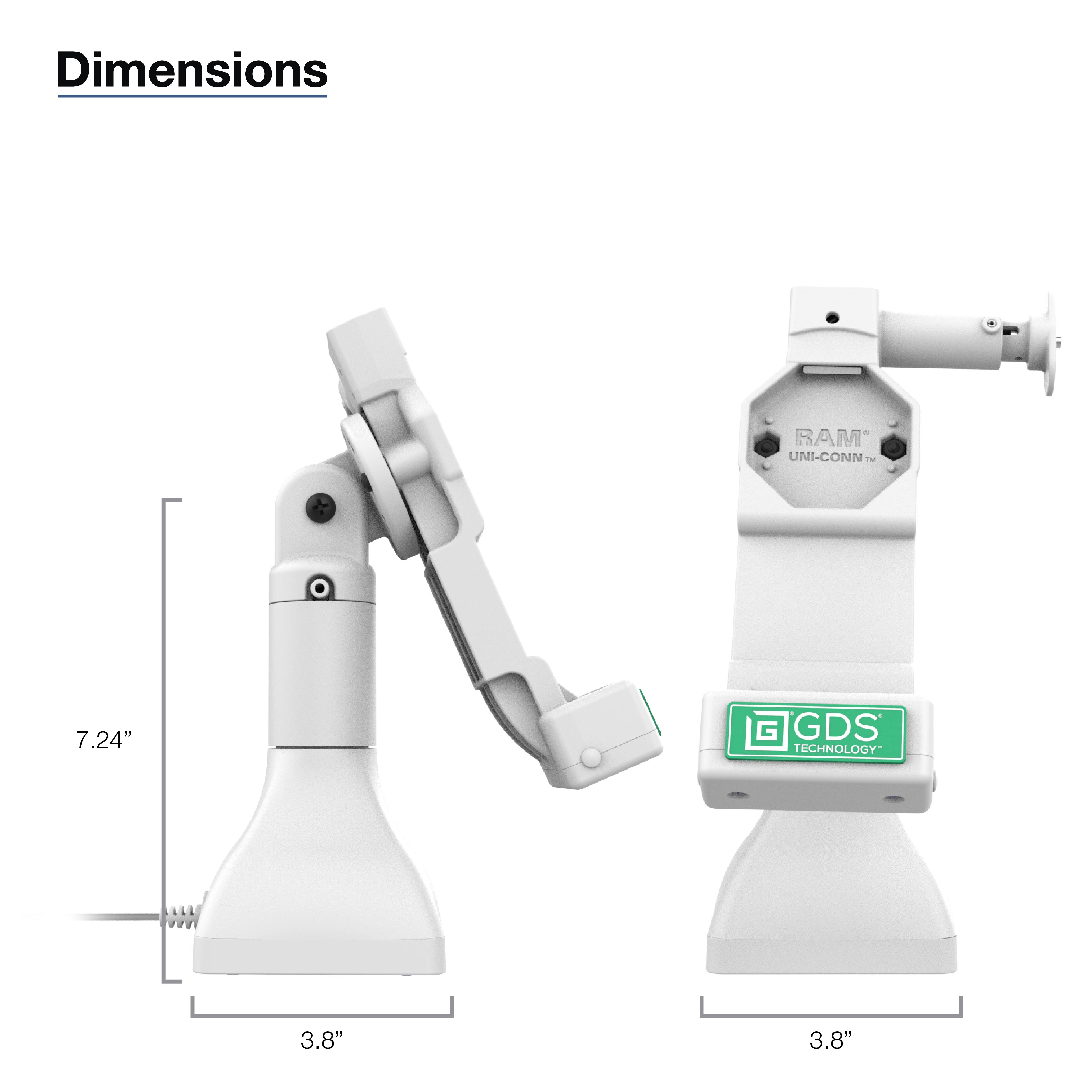GDS® Uni-Conn™ 17,78 cm (7") Piètement de verrouillage avec PoE - Gris | SKU: RAM-GDS-DOCKL-D11-7-U4E-GRY