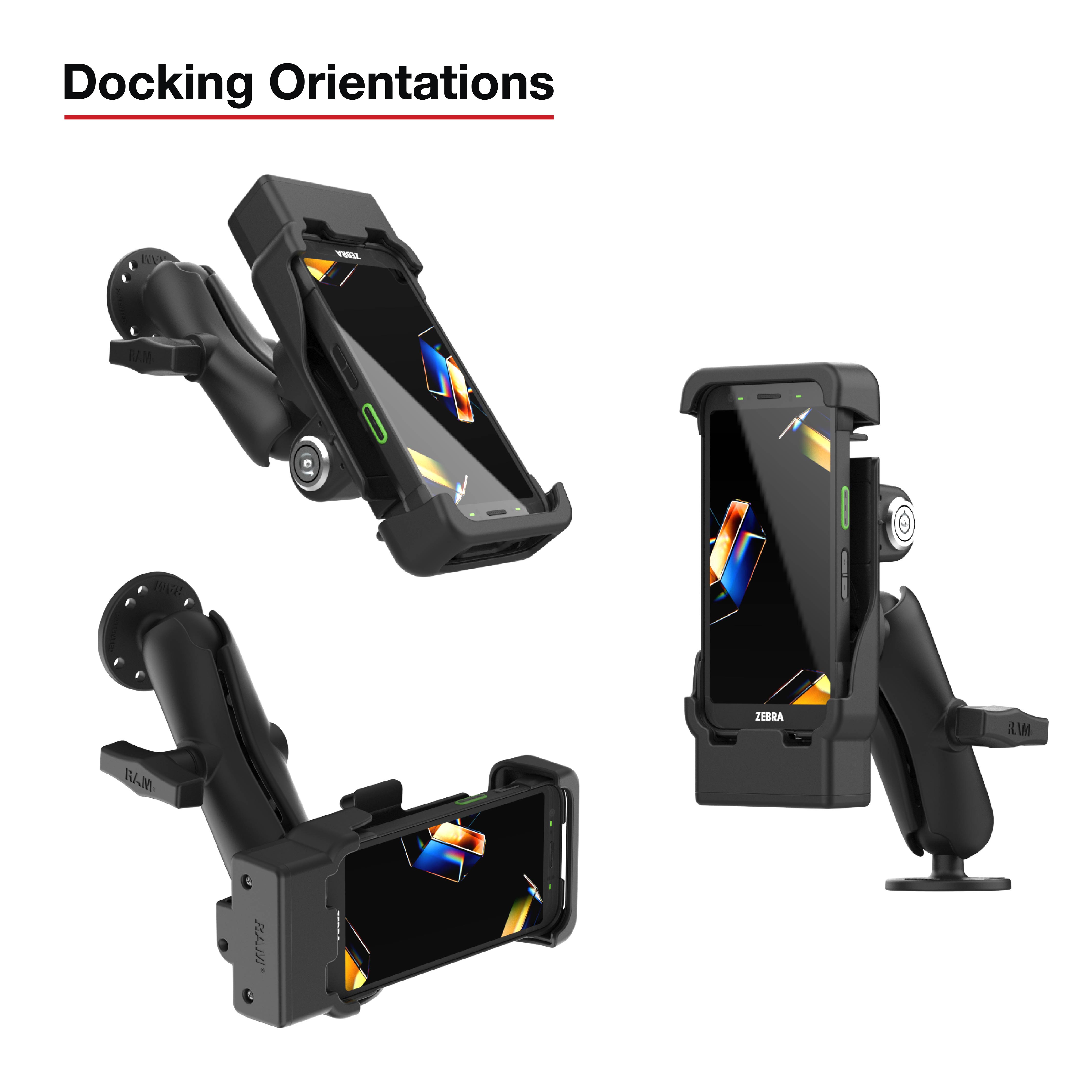 La station d'accueil RAM verrouillable et alimentée avec broches Pogo pour Zebra TC701 (RAM-HOL-ZE41L-1U) est conçue pour fonctionner dans des flux de travail exigeants et réels. En se chargeant via les contacts de charge à pastille pogo de l'appareil, la conception à broches pogo protège le port de charge du TC701 tout en améliorant la durabilité globale. Un mécanisme à ressort permet un ancrage et un retrait rapides, d'une seule main, maintenant les opérateurs efficaces en déplacement. La découpe intégrée du support supérieur permet l'accès aux boutons, aux ports et aux scanners sans retirer l'appareil, ainsi la productivité ne ralentit jamais. Pour une sécurité accrue dans les environnements à fort trafic, le verrouillage par clé intégré offre une dissuasion fiable contre le vol. Complétez votre solution de montage en toute confiance – ce support est compatible RAM et présente un motif AMPS à 2 trous pour une intégration transparente avec un adaptateur à boule diamant.